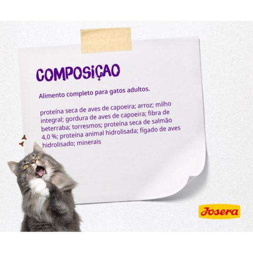 Josera Culinesse é uma ração seca para gatos adultos exigentes, que contém salmão de qualidade superior e óleo de salmão.